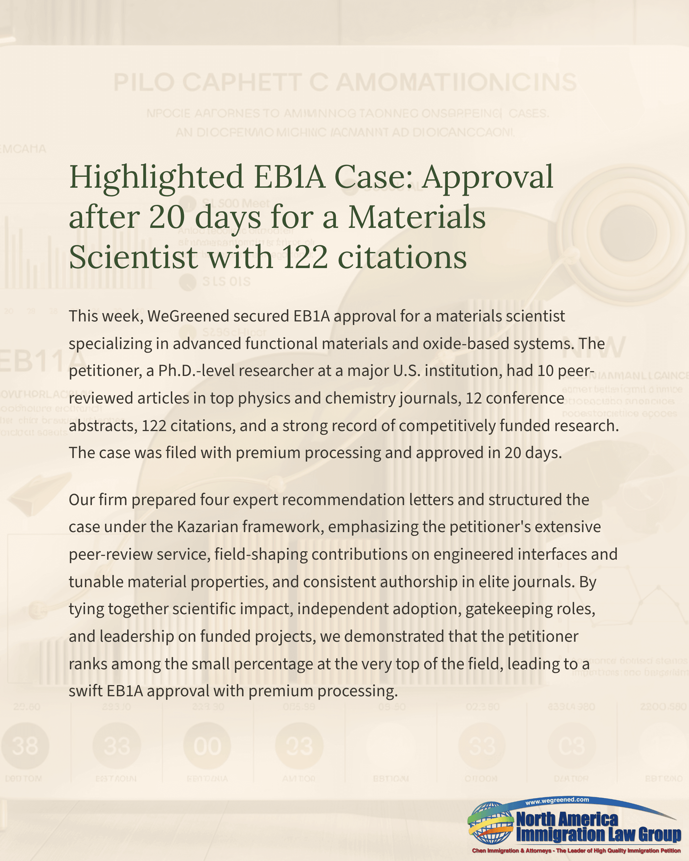 Highlighted EB1A Case: Approval after 20 days for a Materials Scientist with 122 citations