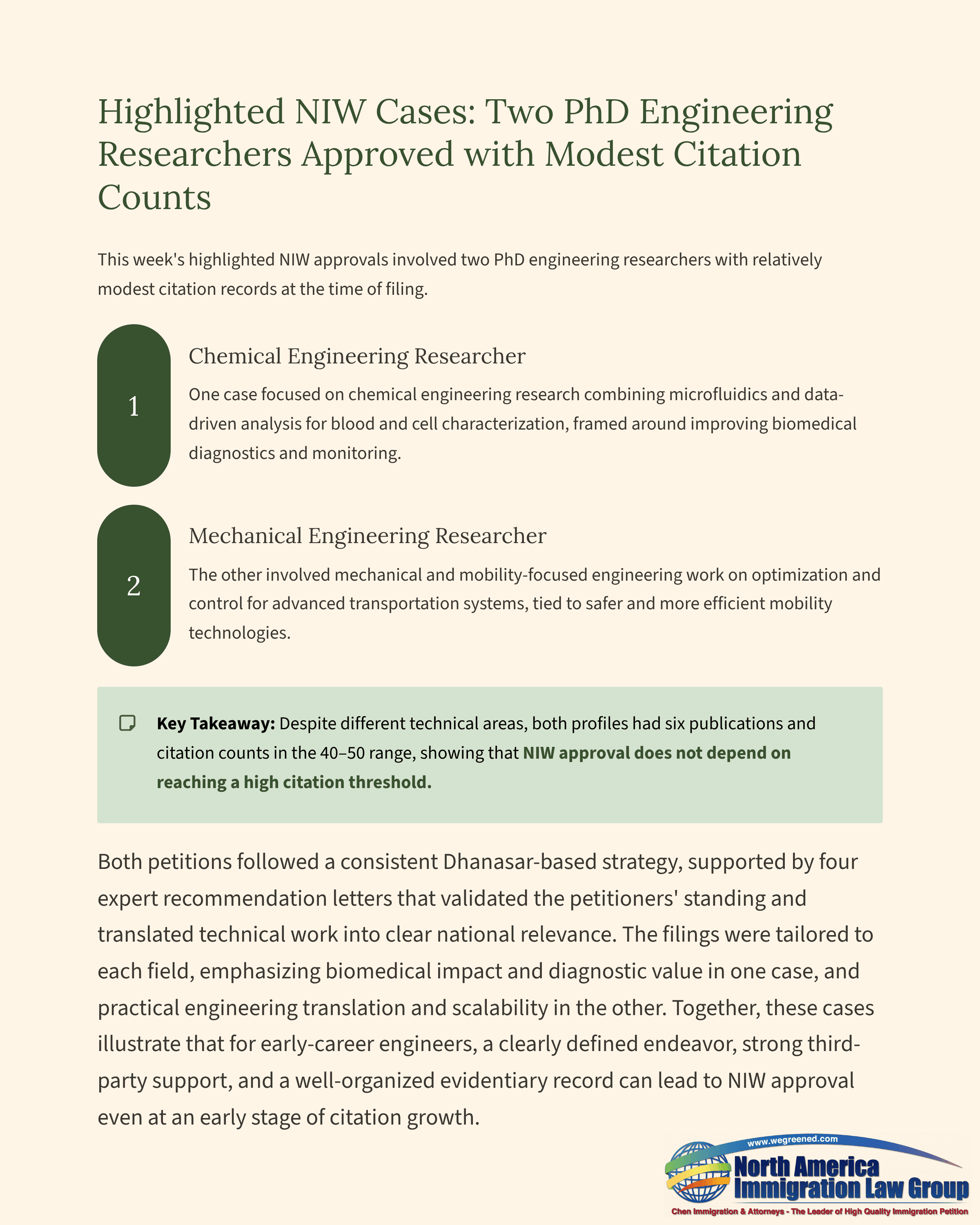 Highlighted NIW Cases: Two PhD Engineering Researchers Approved with Modest Citation Counts