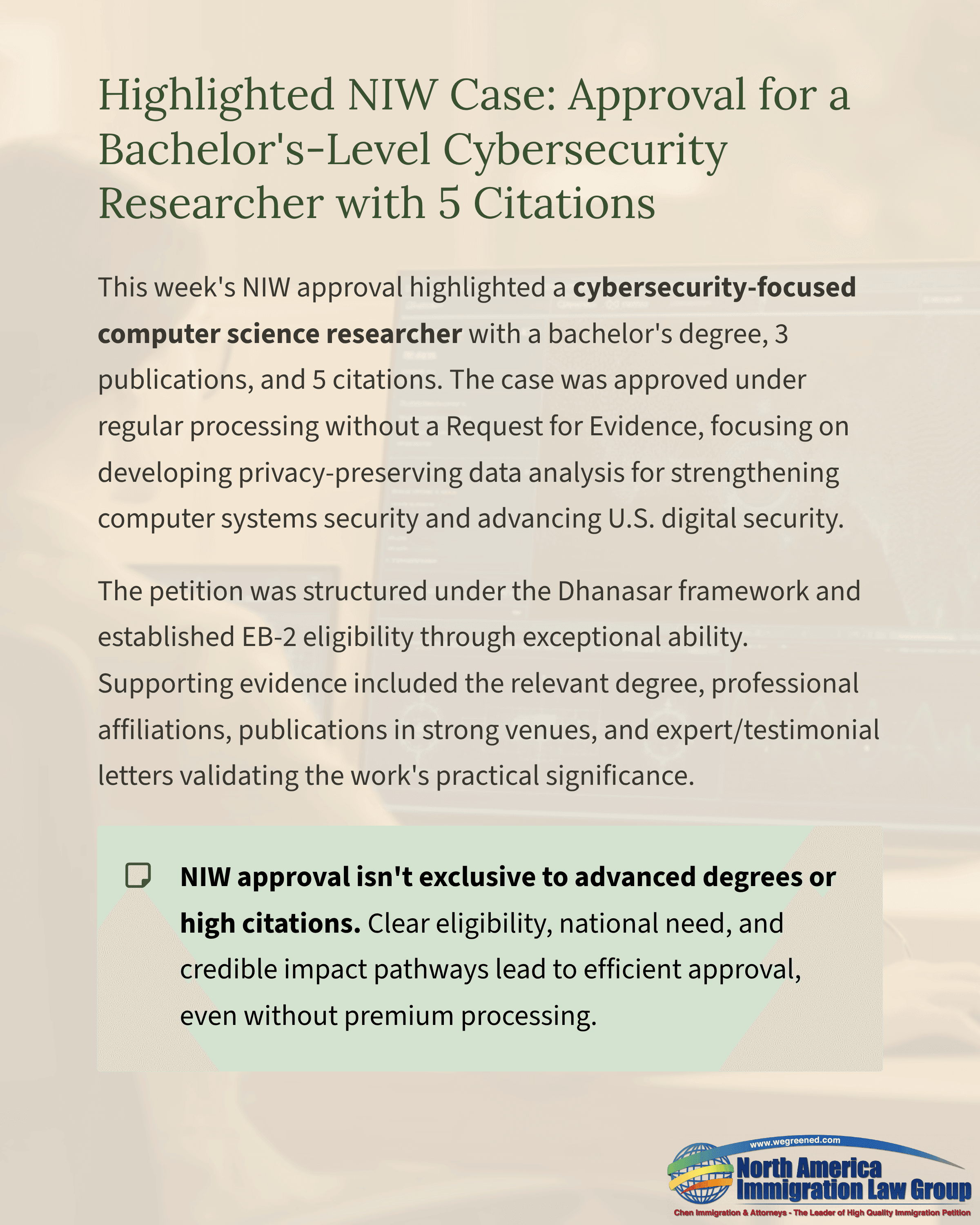 Highlighted NIW Case: Approval for a Bachelor’s-Level Cybersecurity Researcher with 5 Citations