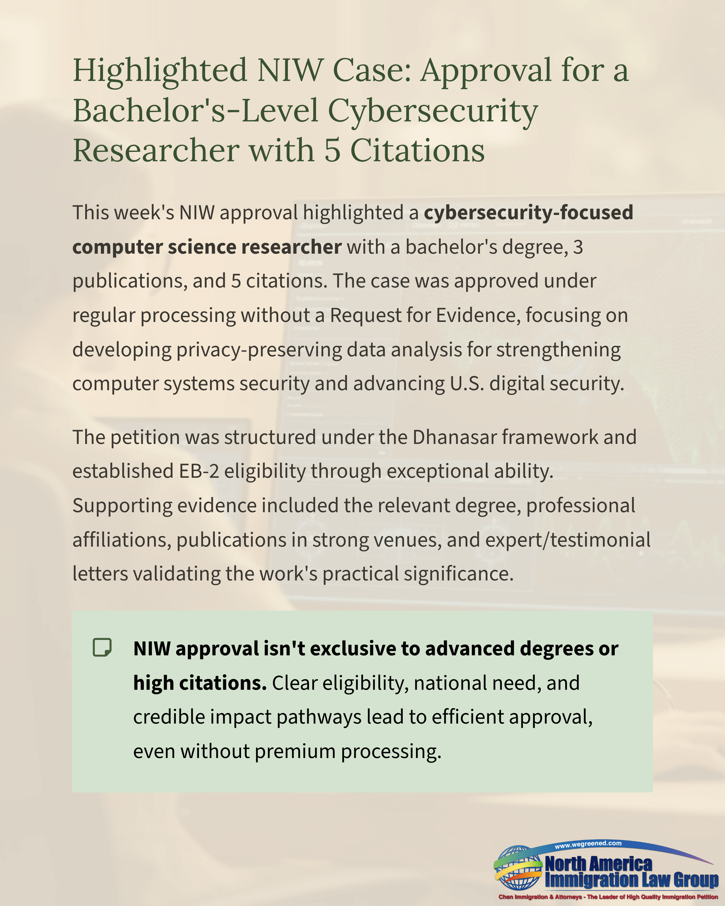 Highlighted NIW Case: Approval for a Bachelor’s-Level Cybersecurity Researcher with 5 Citations