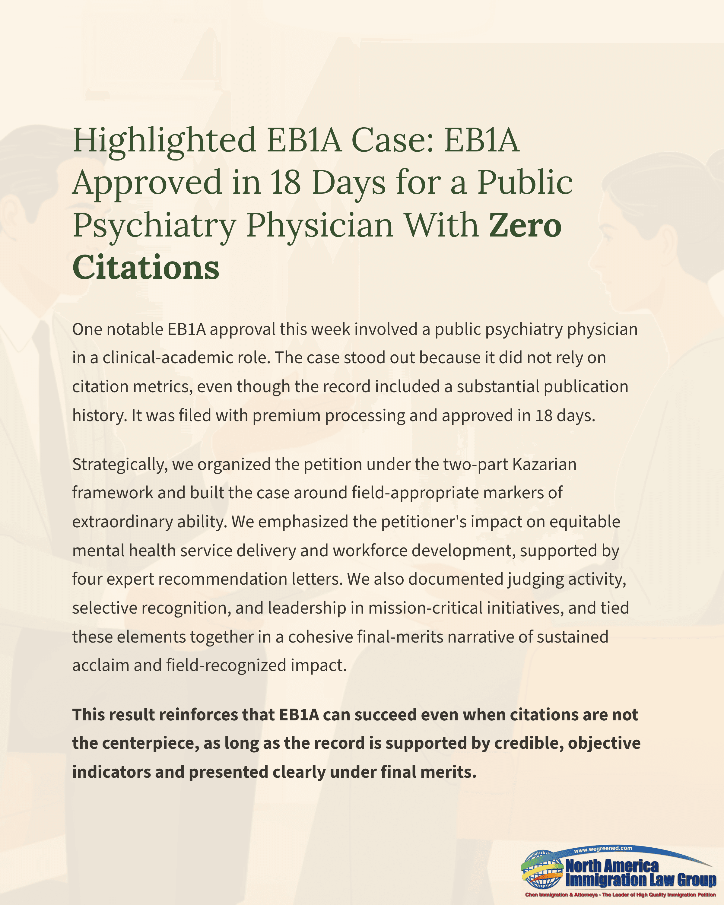 Highlighted EB1A Case: EB1A Approved in 18 Days for a Public Psychiatry Physician With Zero Citations