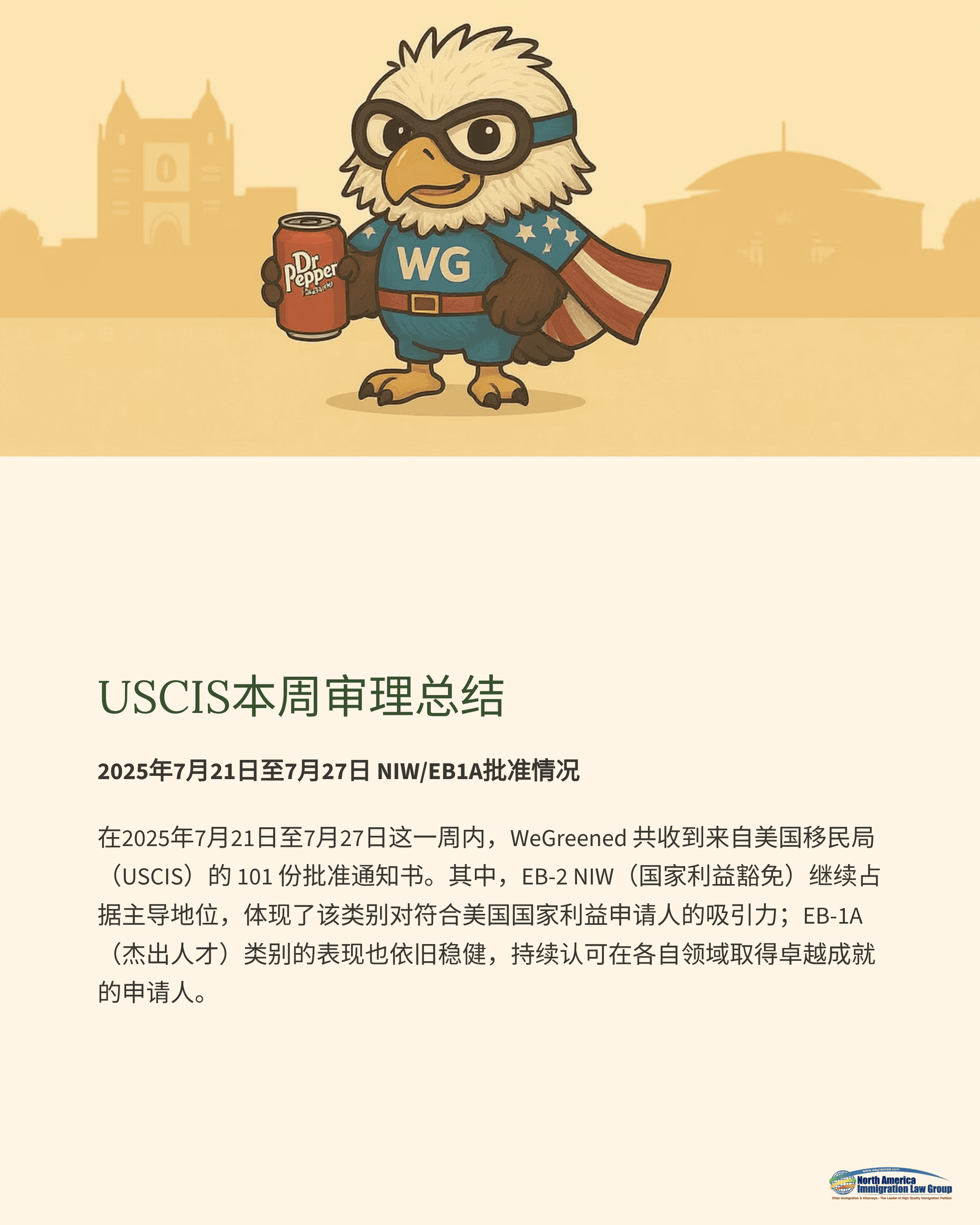USCIS本周审理总结:2025年7月21日至7月27日 NIW/EB1A批准情况