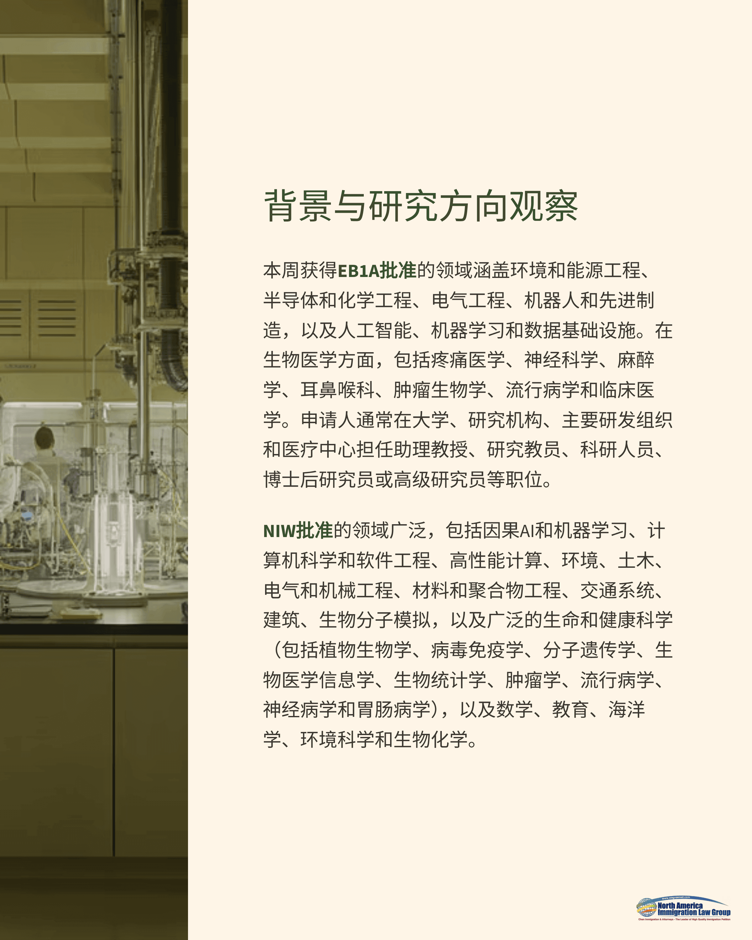 NIW继续占据多数,EB1A则在高成就研究人员、临床医生与产业专业人士中保持强劲表现。