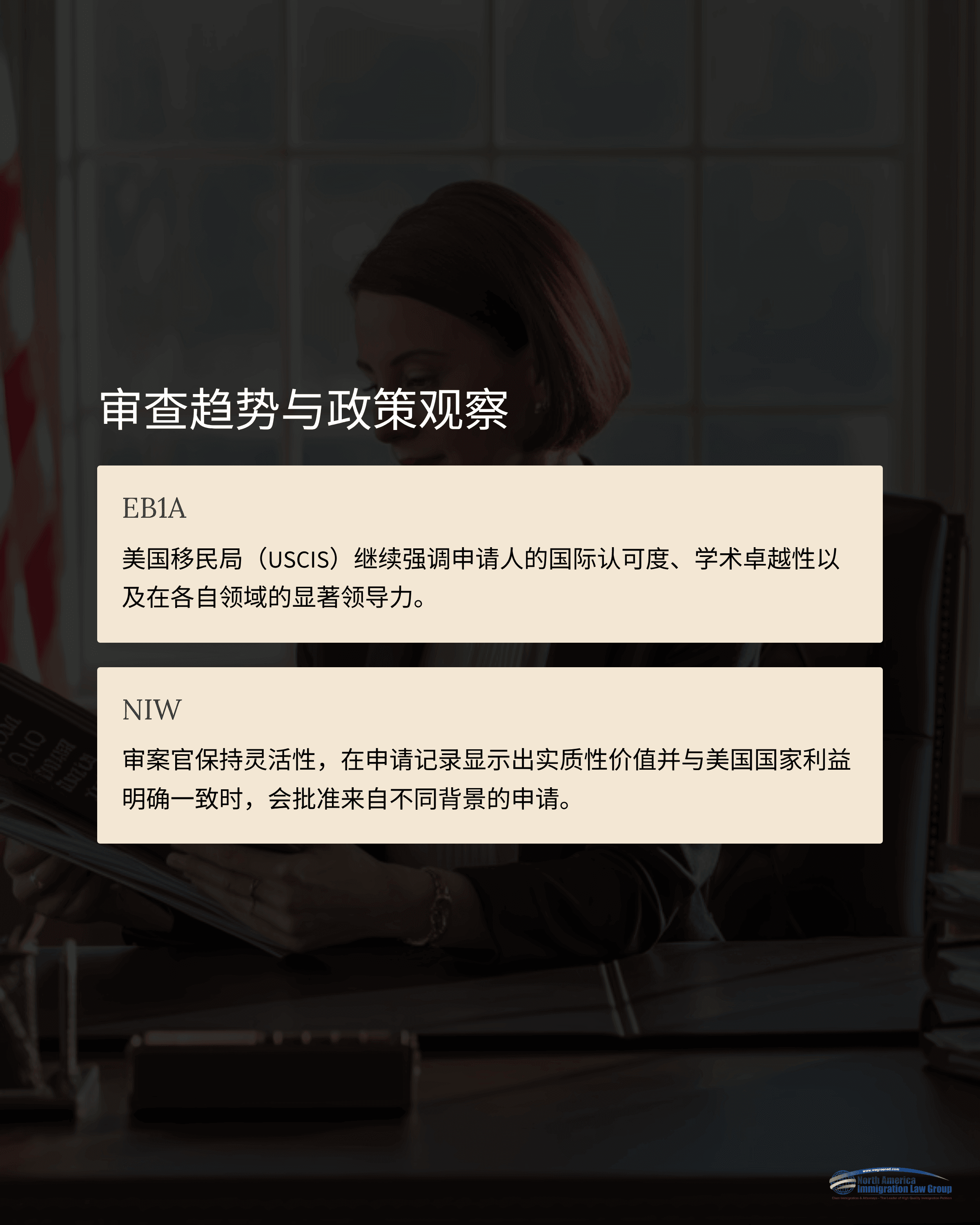 NIW: 审查保持灵活,重视申请人研究与实践是否对美国国家利益目标具有实质贡献。