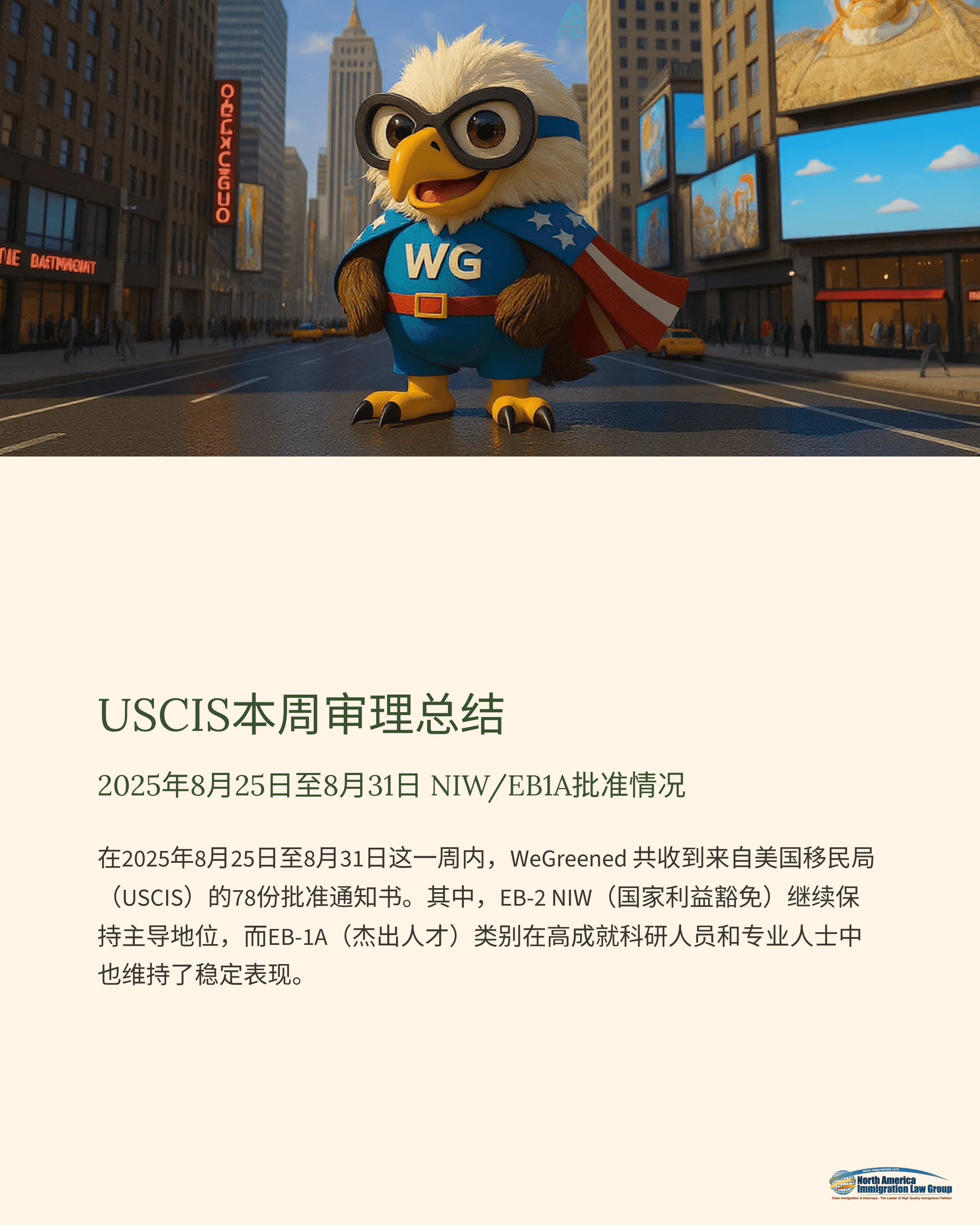 USCIS本周审理总结:2025年8月25日至8月31日 NIW/EB1A批准情况