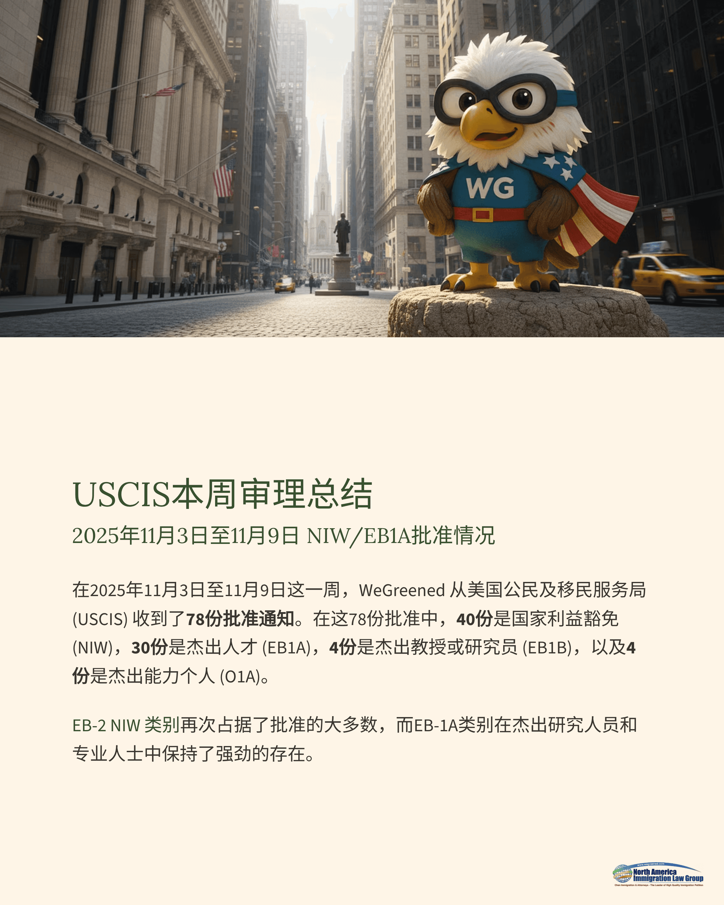 USCIS本周审理总结:2025年11月3日至11月9日 NIW/EB1A批准情况