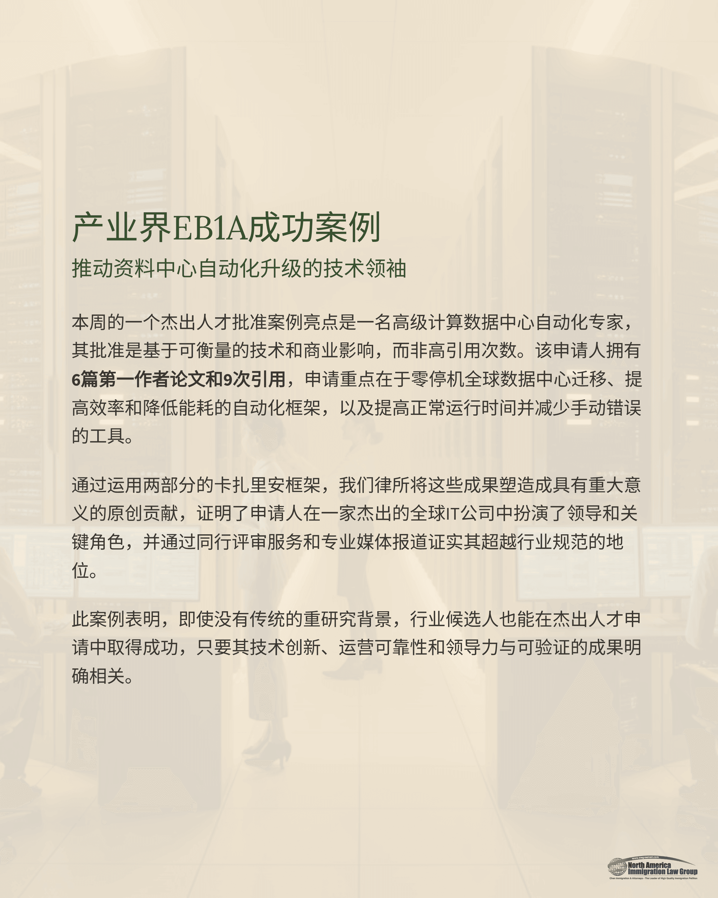 产业界EB1A成功案例:推动资料中心自动化升级的技术领袖