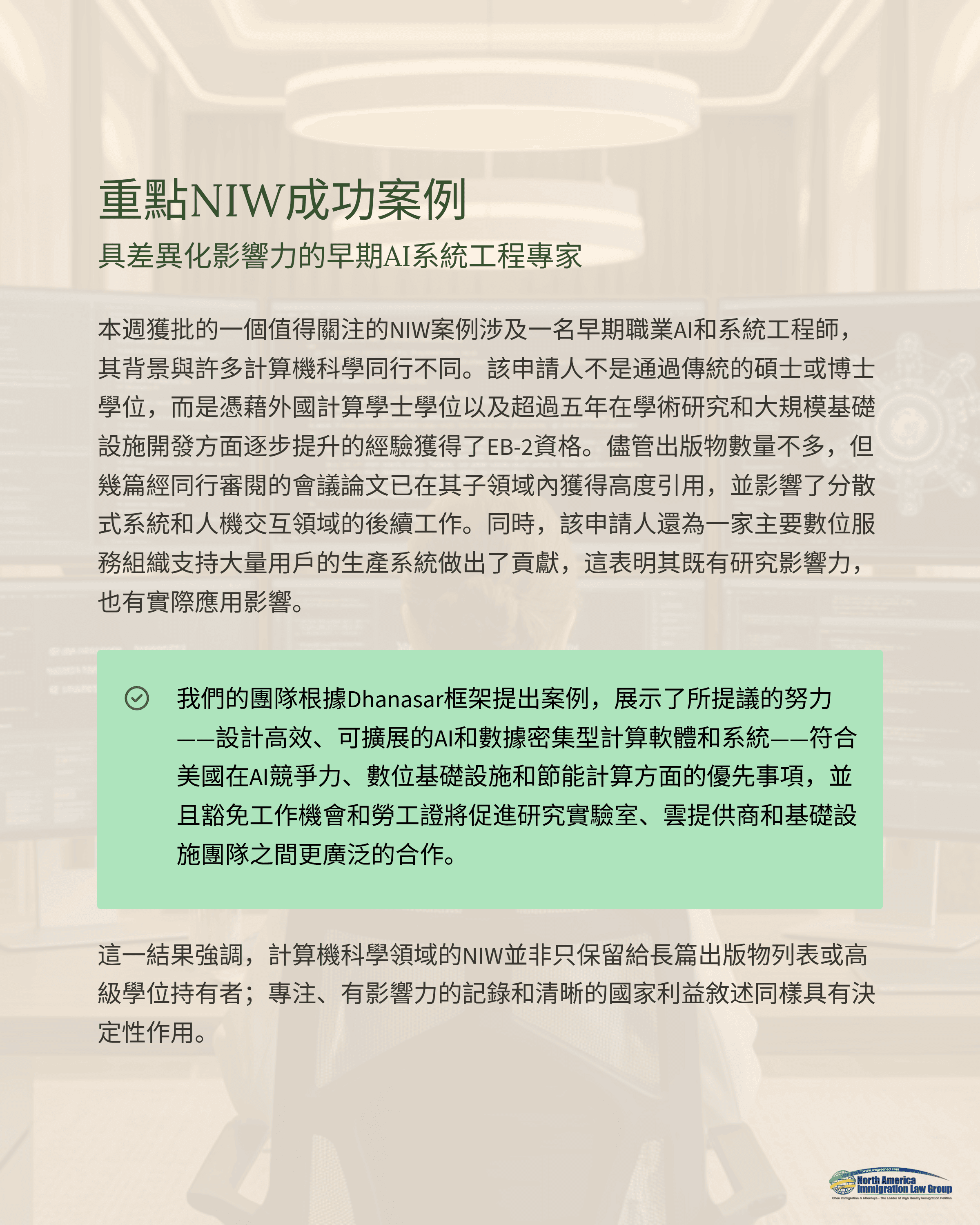 重點NIW成功案例:具差異化影響力的早期AI系統工程專家