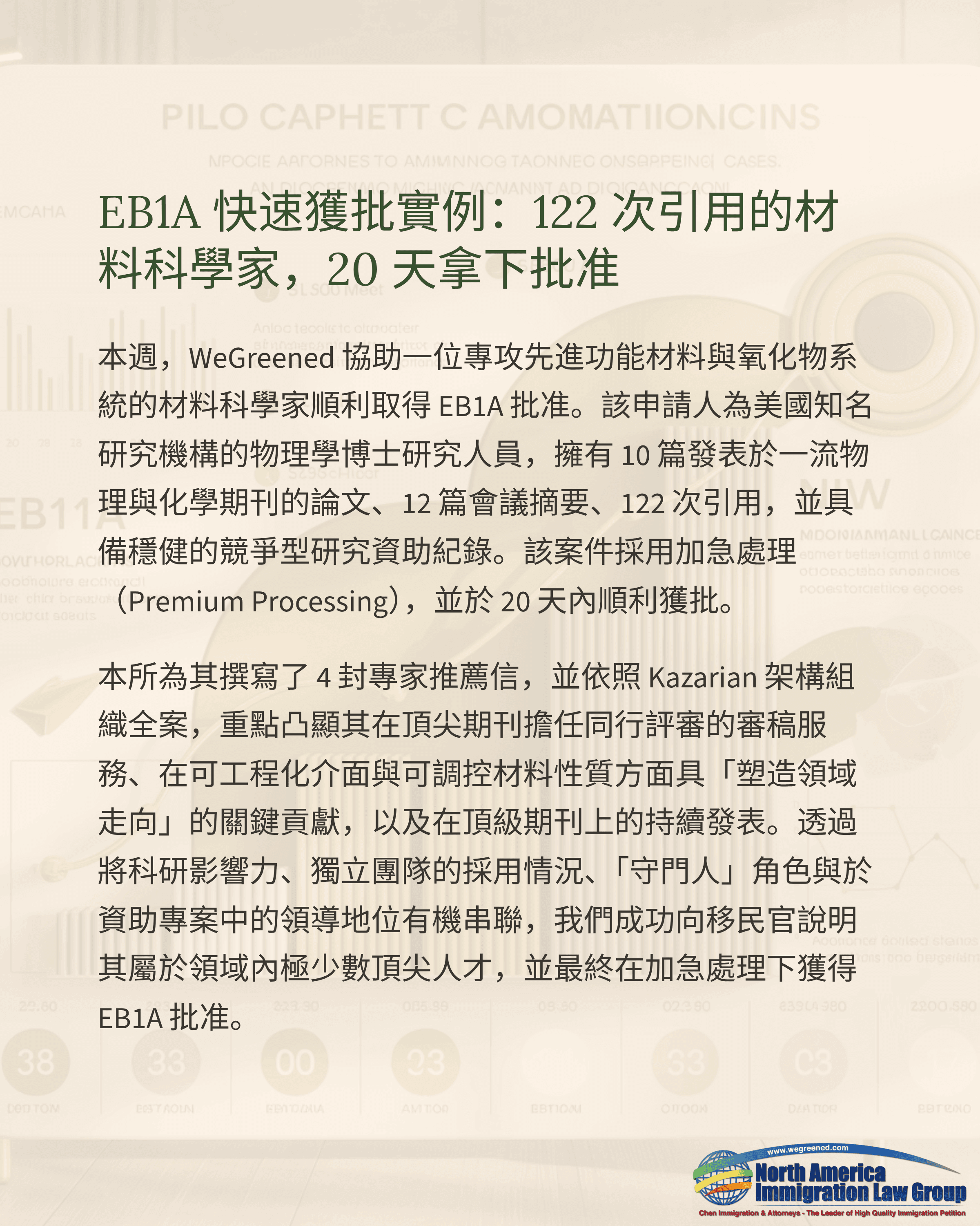 EB1A快速獲批實例:122次引用的材料科學家,20天拿下批准